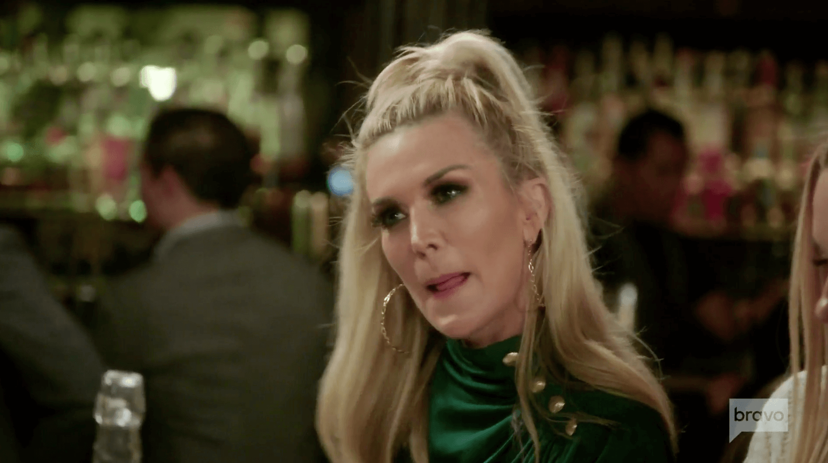 Ramona Singer heads to a bar and compares her outfit with the bartender’s. Tinsley arrives next. With Dorinda out of the way, Ramona can now congratulate Tinsley on renewing things with Scott. Basically, Ramona felt bad, so she threw Tins a bone and filmed them having cocktails.