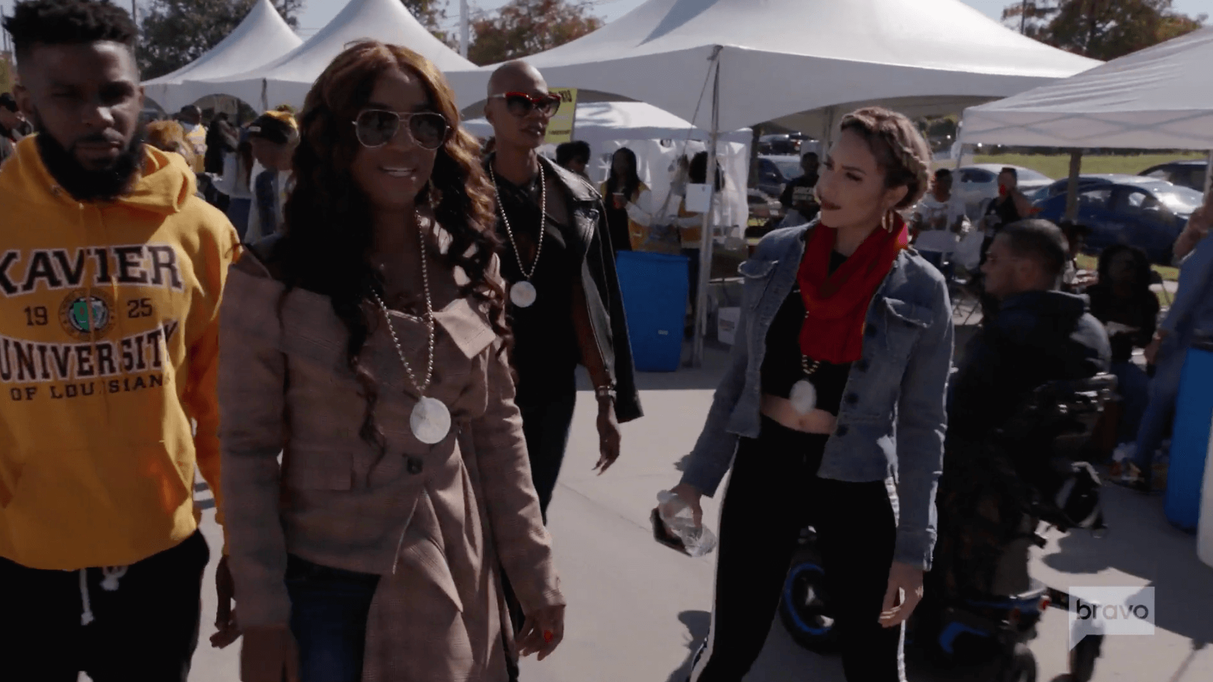 The episode picks back up in New Orleans while Dr. Britten Cole, Dr. Imani Walker and Dr. Contessa Metcalfe get ready for their speaking engagement at their alma mater, Xavier University. Meanwhile, Jazmin Johnson is still playing weight loss coach and has an aerial yoga session planned for her student Dr. Kendra Segura. Unfortunately, Kendra is not super enthused about hanging upside down in silk ropes. During the workout, Kendra drops a bomb that she plans to take a new fulltime position. The catch- her husband, Hobart, doesn’t know. YIKES.