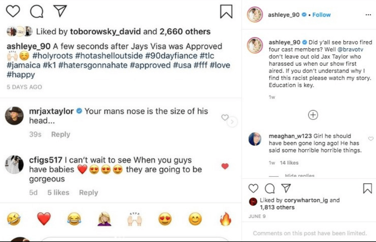 “Your mans nose is the size of his head…” Jax Taylor wrote about Ashley Smith’s husband, Jay Smith, who is black.