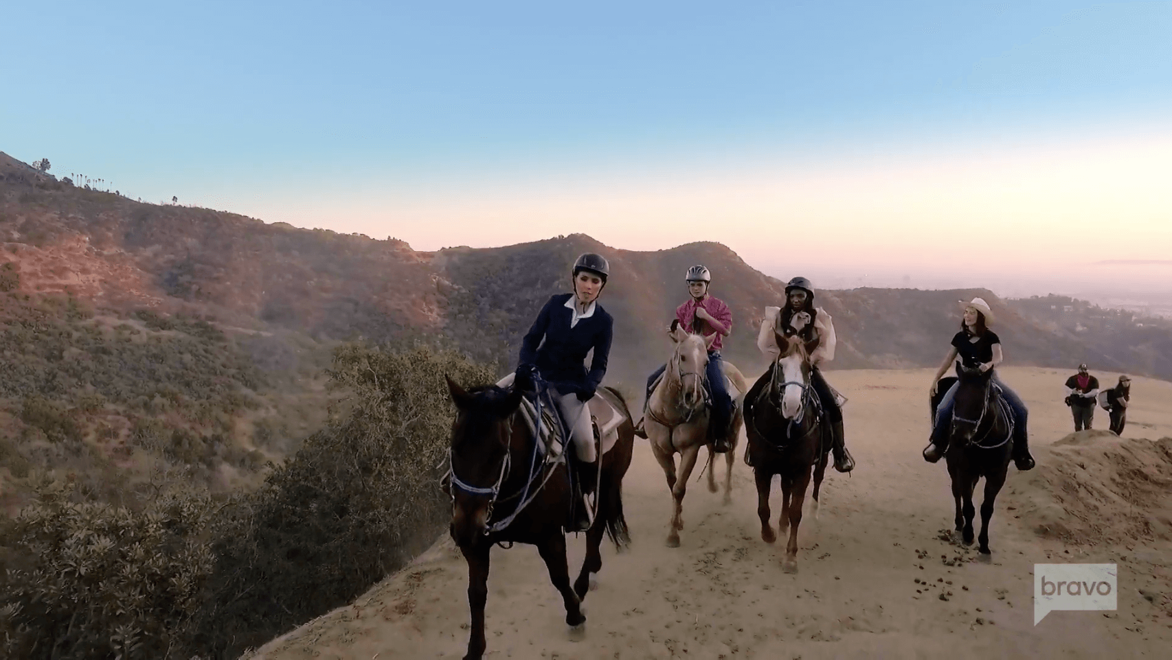 After the group gets back from their horseback riding excursion they dig into a catered BBQ buffet complete with all of the fixins. Well, everyone except for Jazmin, that is. While everyone else is digging into the mac and cheese, baked beans, cornbread and chilled sangria, Jazmin opts for a lean chicken breast and a refreshing glass of… water. According to Jazmin, sangria has way too much sugar. She takes it one step further when she walks over to fitness student, Dr. Kendra Segura, and tries to snatch the cornbread off of her plate. “You can’t have cornbread. We’re on a diet, remember?” she reminds her. Kendra looks at her in shock as she begrudgingly hands over the carb-laden goodness. Britten calls Jazmin out screaming, “Are you policing her food?!”