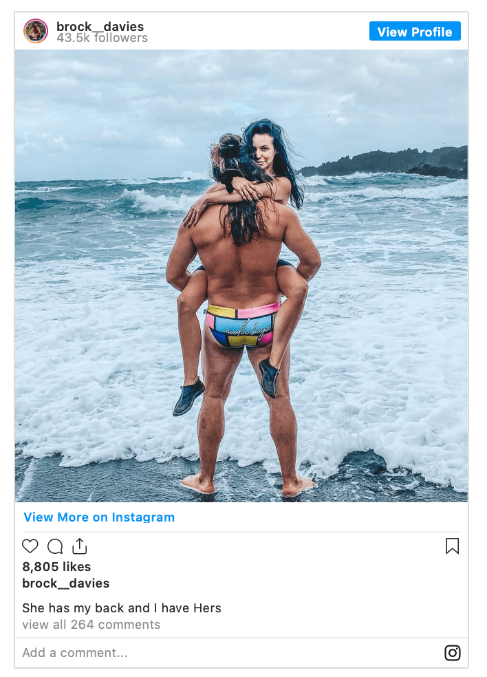 On Saturday, Scheana Shay’s boyfriend shared a cute couple snap on Instagram — the duo sharing a sweet moment on the beach. Brock is rocking a speedo in the backside shot, while hanging on tight to the VPR star.