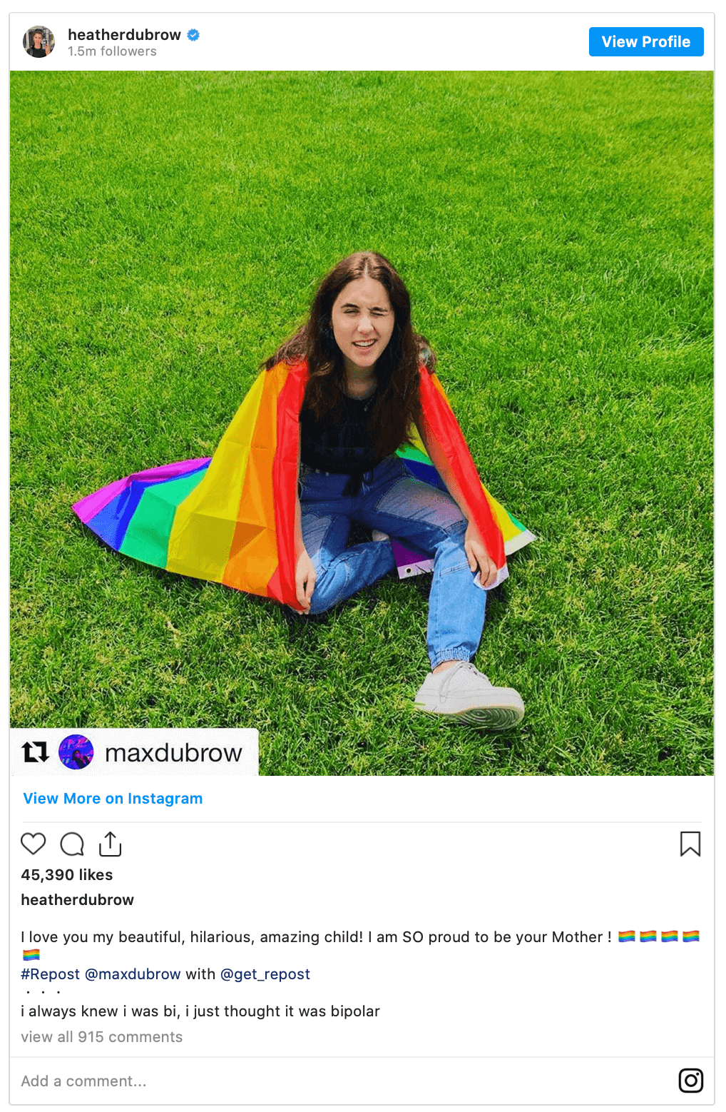 Maximillia “Max” DuBrow shared her news on Instagram on Tuesday, the last day of Pride Month.