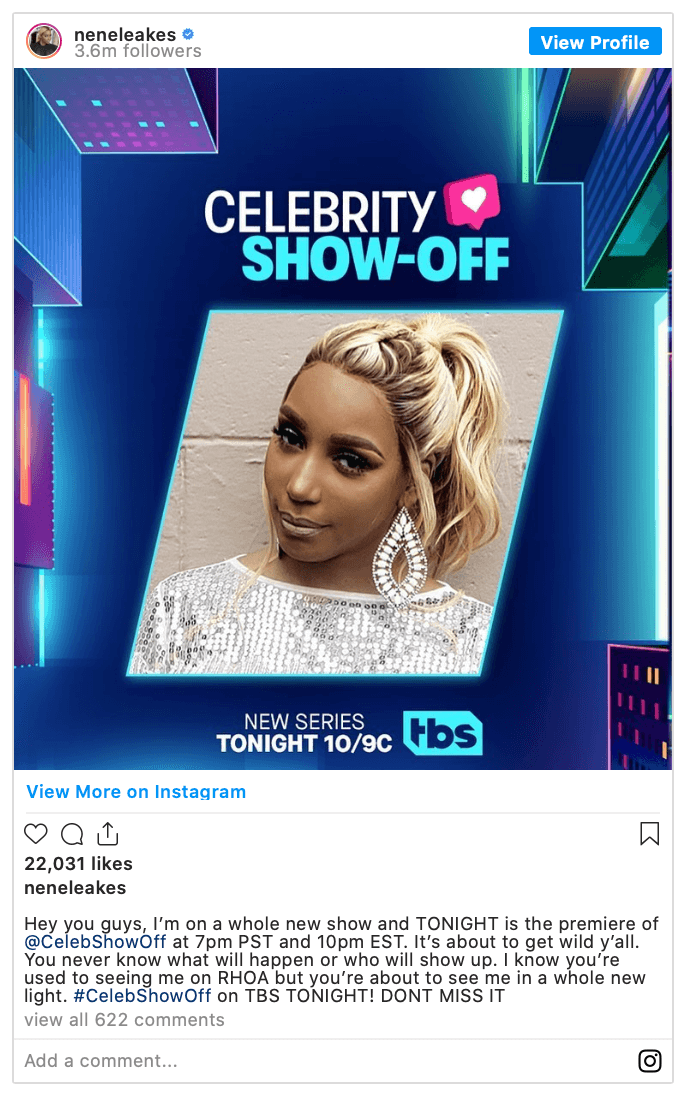 NeNe Leakes is also appearing on TBS series, “Celebrity Show-Off,” another reason to put her rumored exit from RHOA on the back burner.