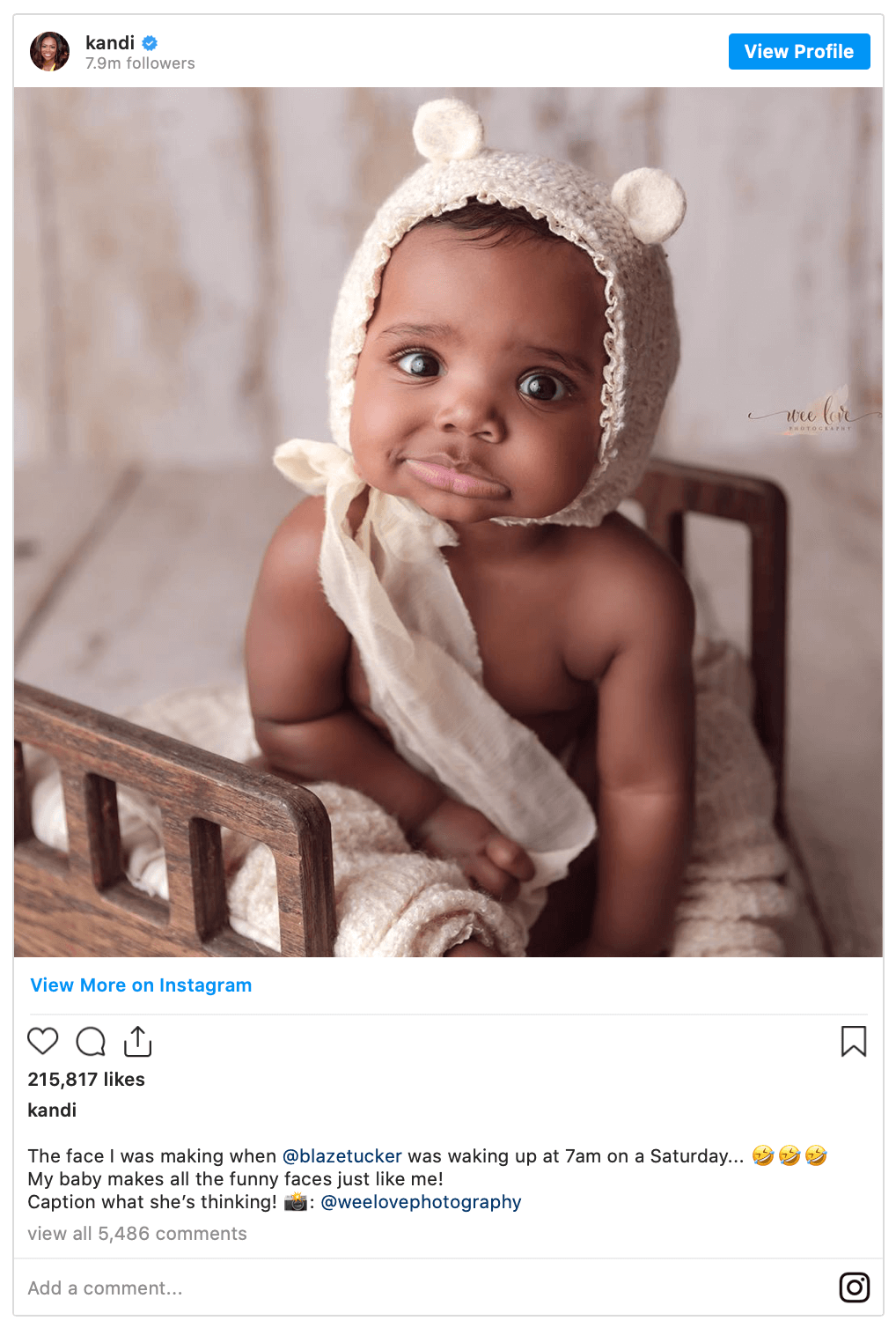 Kandi Burruss recently shared that her 7-months-old daughter often makes funny faces just like her mama. “The face I was making when @blazetucker was waking up at 7 am on a Saturday…My baby makes all the funny faces just like me. Caption what she’s thinking!”