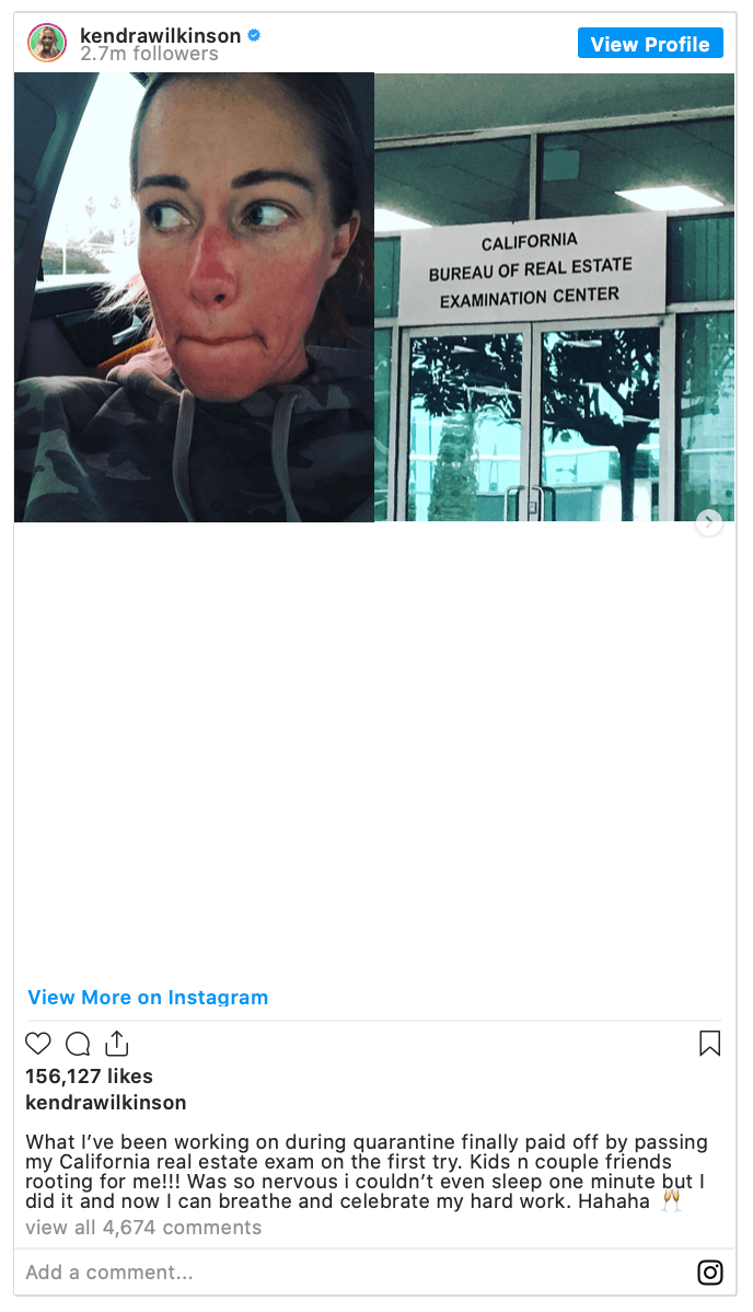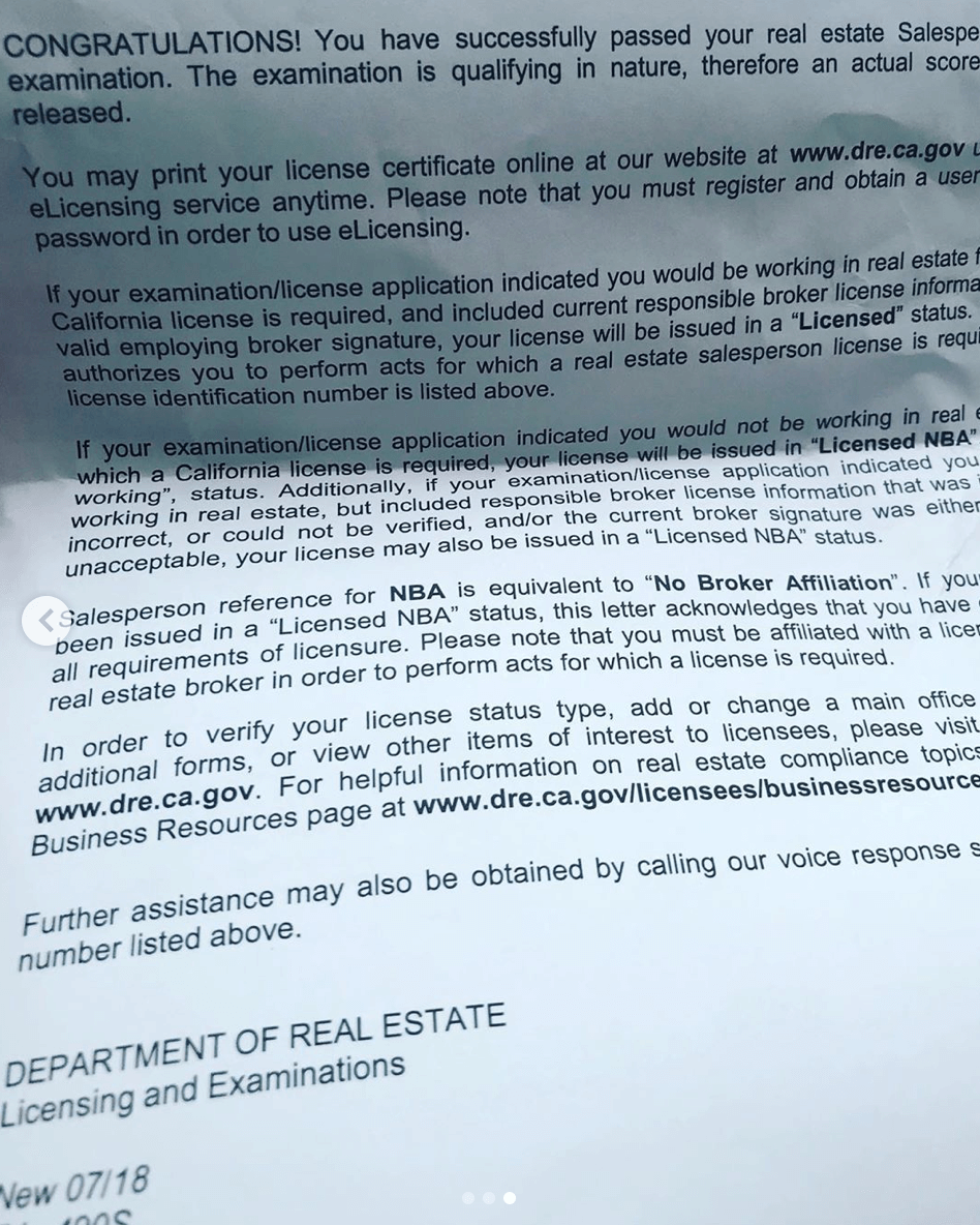 On June 24, the reality star shared that she had passed the California real estate exam. “What I’ve been working on during quarantine finally paid off by passing my California real estate exam on the first try. Kids n couple friends rooting for me!!! Was so nervous i couldn’t even sleep one minute but I did it and now I can breathe and celebrate my hard work.”