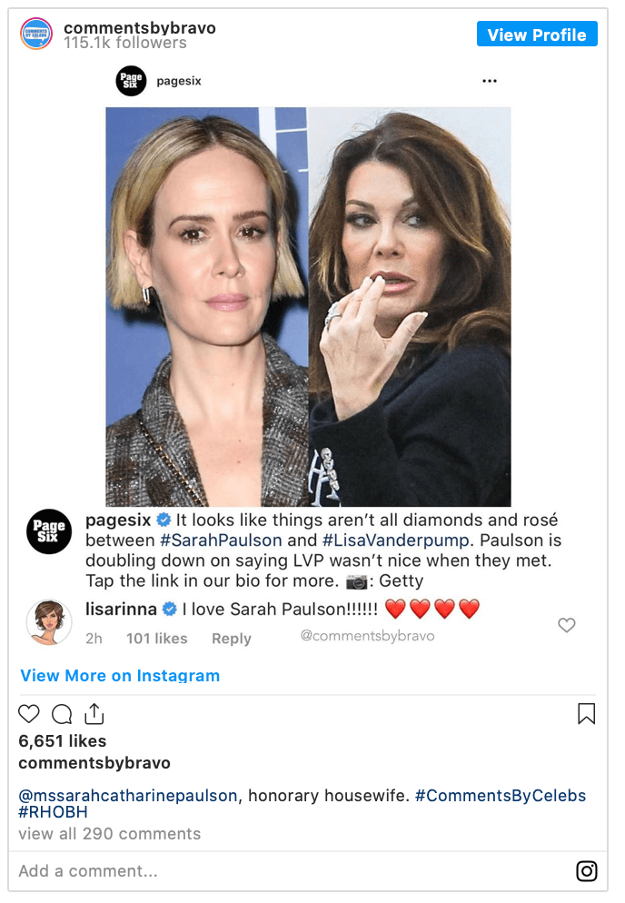 Lisa Rinna was slammed in the comment section for cosigning Paulson’s Vander-shade — but fans are seldom surprised by the reality star’s never-ending hustle for attention.