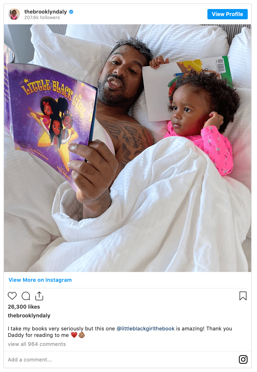 Kenya Moore also shared a cute daddy/daughter pic from Brooklyn’s IG account, on Tuesday.  “I take my books very seriously but this one @littleblackgirlthebook is amazing! Thank you Daddy for reading to me,” the caption read.