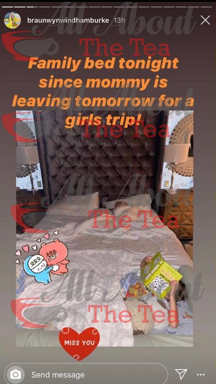 Braunwyn Windham-Burke and Gina Kirschenheiter both posted photos confirming the cast trip on Instagram. Braunwyn’s now-deleted IG story read, ”family bed tonight since mommy is leaving tomorrow for a girls trip.”