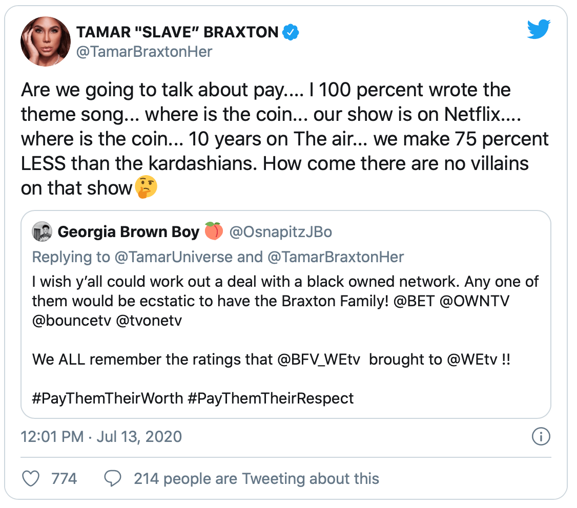 This week, the outspoken Braxton sister took to Twitter to call out WE tv for not giving her the contract she deserves.