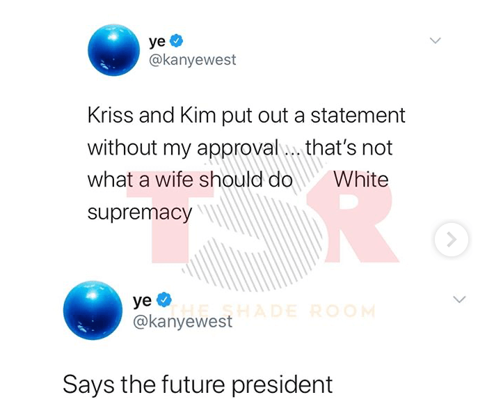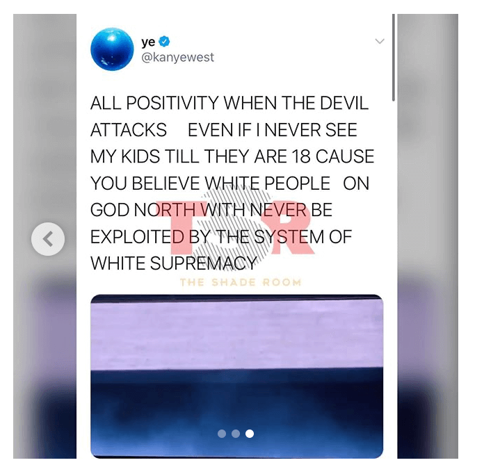 Kanye West called Kris Jenner a “devil,” and vowed, “EVEN IF I NEVER SEE MY KIDS TILL THEY ARE 18 CAUSE YOU BELIEVE WHITE PEOPLE ON GOD NORTH WITH NEVER BE EXPLOITED BY THE SYSTEM OF WHITE SUPREMACY.” Kanye then posted a screenshot of an unanswered text he sent Kris. In the messages, Kanye threatens to “go to war” if Kris continues to ignore his messages.