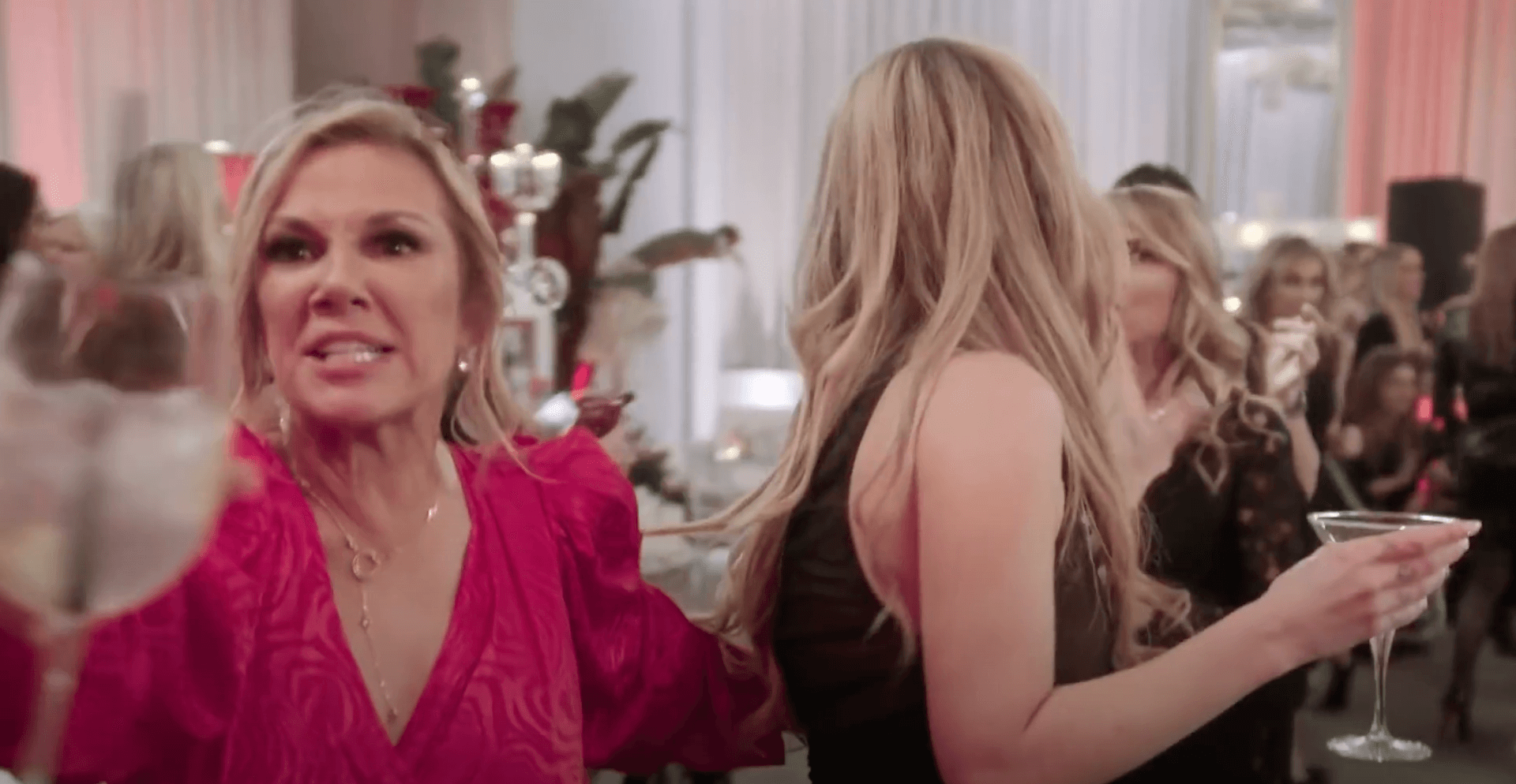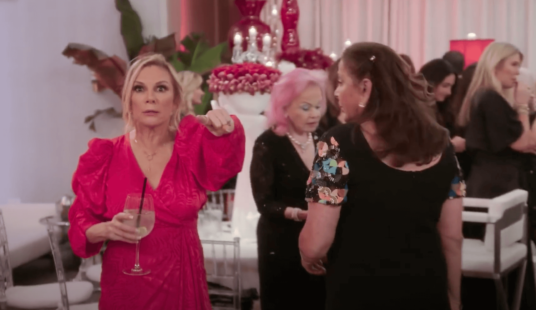Ramona Singer becomes overwhelmed after a spectacle unfolds at her birthday party, when cast rookie, Leah McSweeney appears to “ride”Luann de Lesseps.
