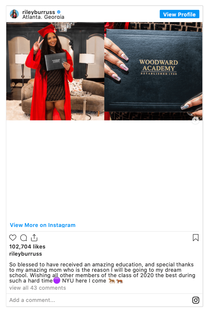 Many Real Housewives of Atlanta fans believe that Riley scored the surgical redo as a graduation gift.