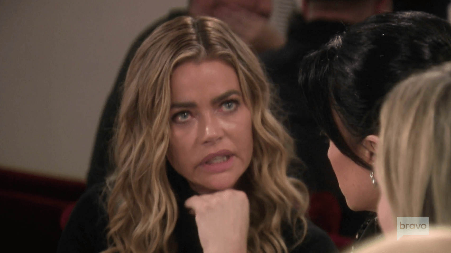 Denise Richards’ eyes well up with tears as she continues to distinguish the rumors that Teddi has abruptly sprayed into the air. In a last-ditch effort (and apparently something she’s known for) Denise yells out “Bravo, Bravo, Bravo” incorrectly assuming that the conversation wouldn’t be aired now that the proverbial fourth wall has been broken. She also looks directly at the cameramen and pleads with them to not air the conversation. The ladies then take Denise to task for trying to control the storyline by asking that things not be aired.