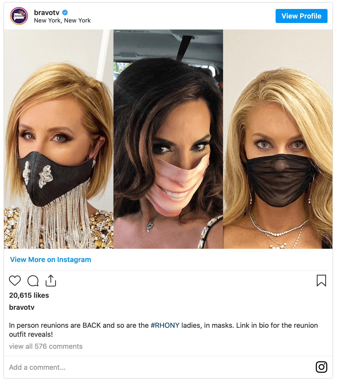 Real Housewives of New York City fans ripped Leah McSweeney a new one after the Bravo TV Instagram page posted a photo of LeahSonja Morgan, and Luann de Lesseps reunion mask looks.