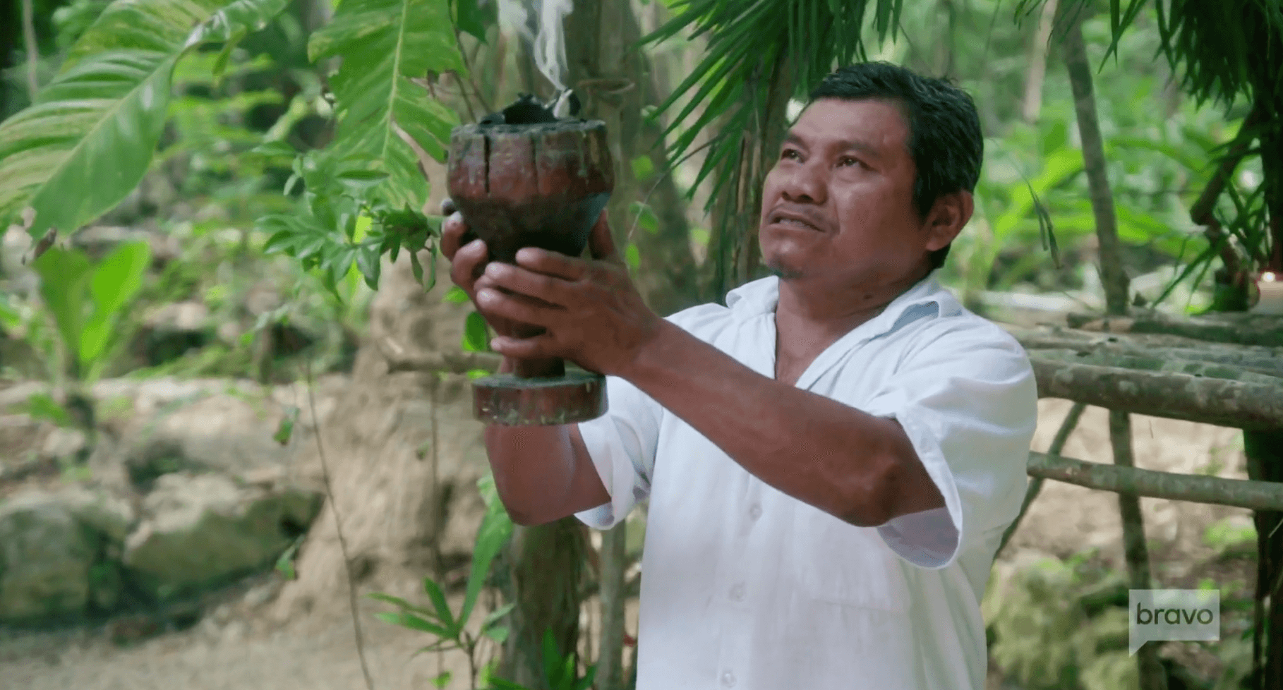 Afterward, it’s time for lunch. The women sip on cucumber juice and talk about the experience. Leah wasn’t fazed by the shaman. She sees a bruja in Brooklyn who helped her get over a bad breakup. Apparently, his bad energy was stored up in Leah’s hooha. She used a crystal egg to banish it. Ramona just rolls her eyes.