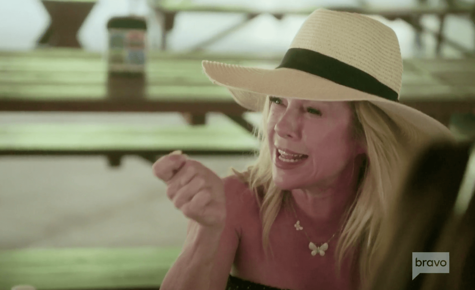 Outside, Lu, ever the Countess, says it’s rude to sit at the table and be on your phone the whole time. Isn’t this what their parents taught them? Um, I’m pretty sure the only phone Lu had growing up contained a coiled cord and a rotary dial. Anyway, Leah feels attacked by the way Dorinda keeps carrying on about table etiquette. When Dorinda walks to the kitchen to ask for jam, Ramona whispers to Lu and Leah that Dorinda was starting to spiral out and get angry. Luckily, they shut her down in time.