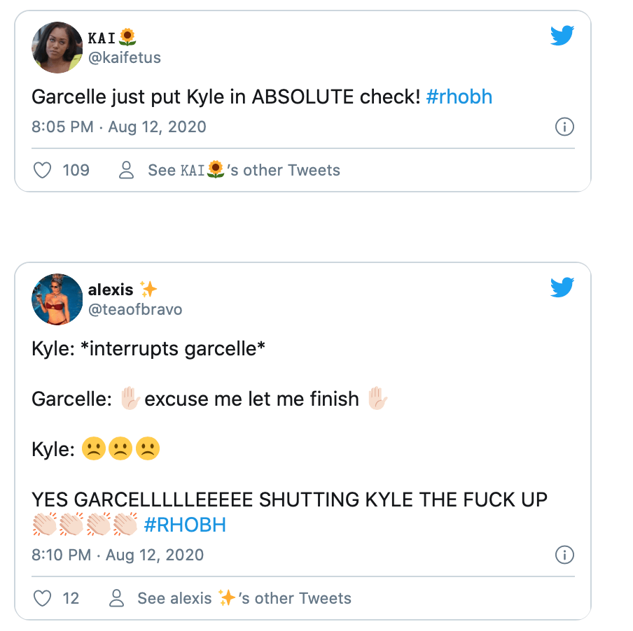 Garcelle Beauvais shushed Kyle Richards while defending Denise during a separate cast chat sesh — and viewers applauded the effortless victory on Twitter.