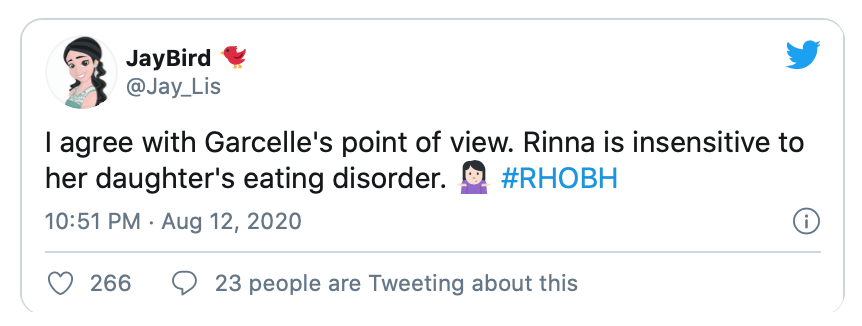 Garcelle Beauvais also challenged Lisa Rinna to consider how her Instagram game might be affecting her daughter, Amelia Hamlin. Amelia has been open about her struggle with anorexia, sparking controversy about Rinna’s skimpy IG vids.