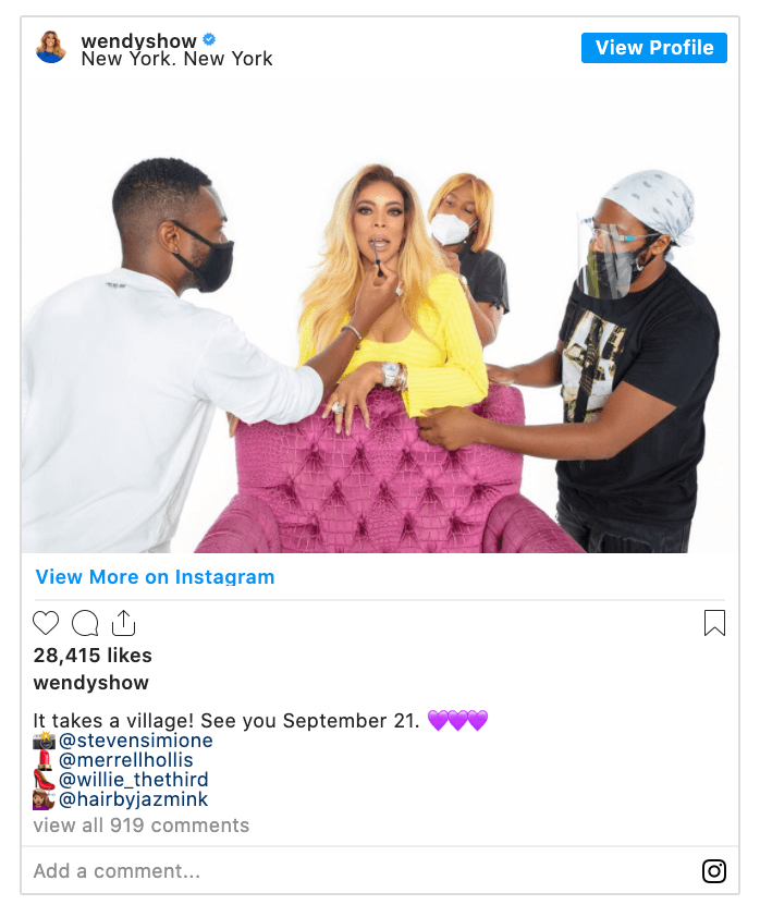 “It takes a village! See you September 21,” Wendy Williams posted, last week.